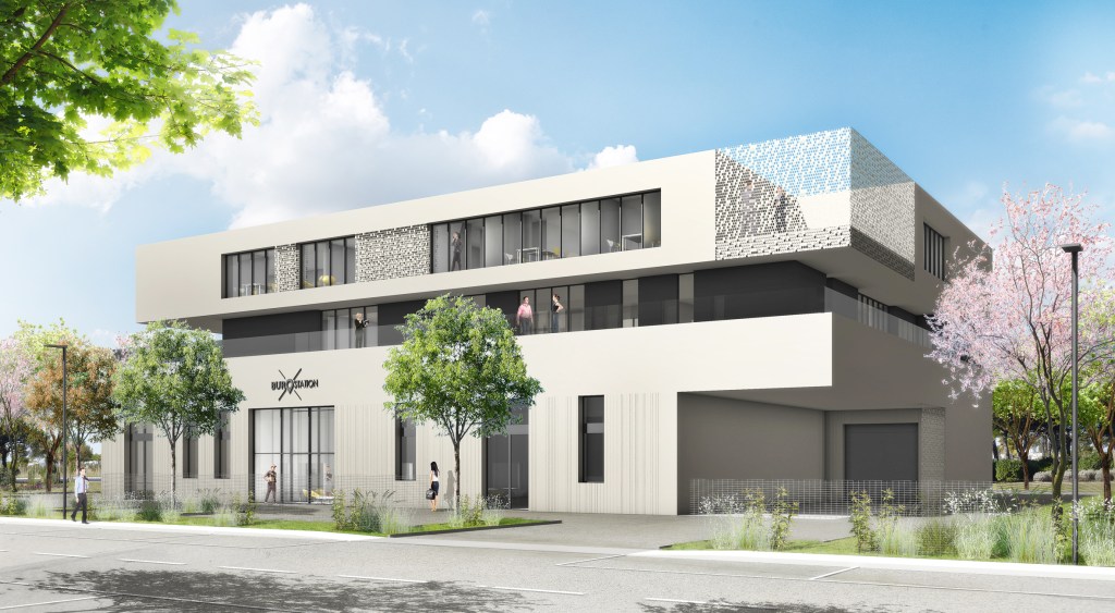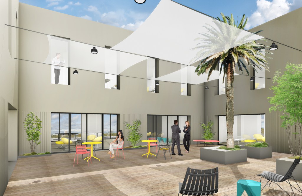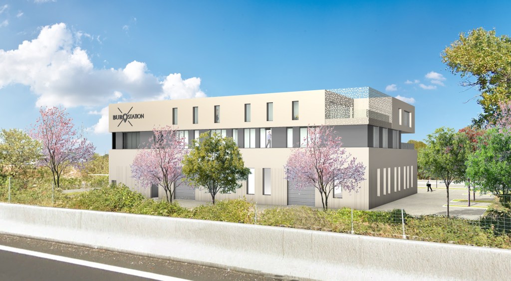 DESCRIPTION : Opération de construction de bureaux pour le siège de burostation, Showroom et entrepôts avec bureaux partagés en co-working Bureaux&co à Montpellier sur la Zac Garosud.