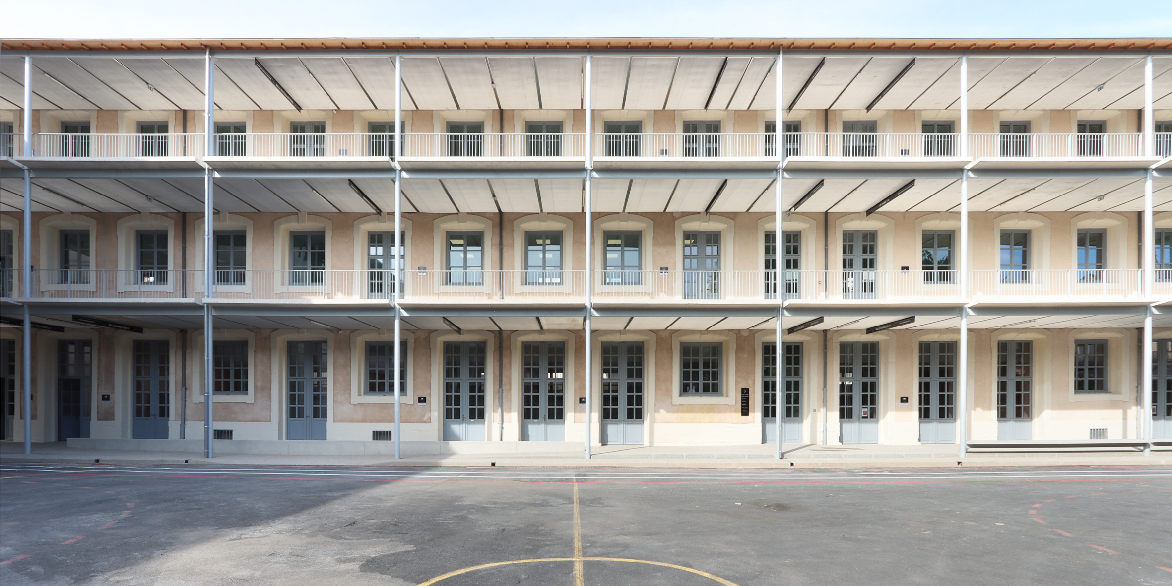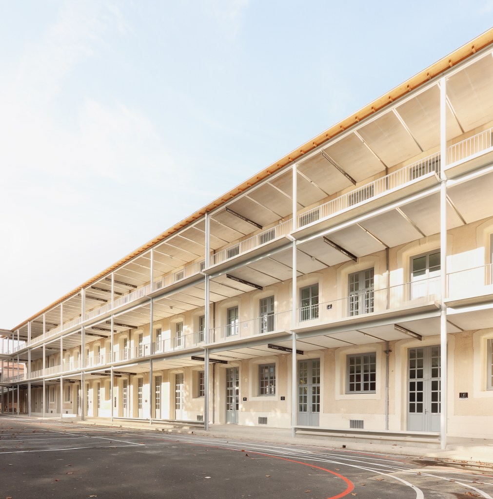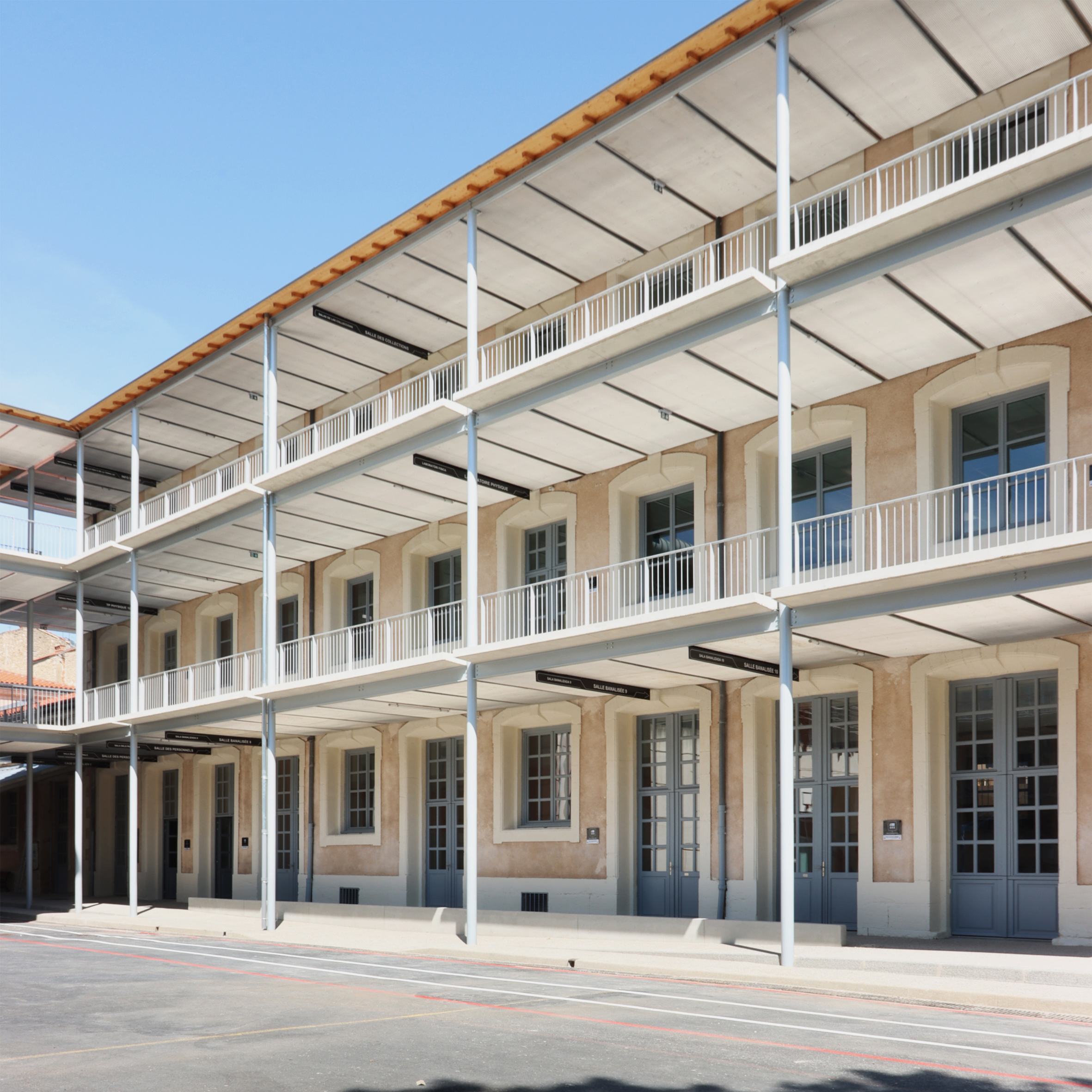 DESCRIPTION : Opération de réhabilitation en site occupé de la cité scolaire Georges Clemenceau avec restructuration lourde du pole sciences et technologique. Création de salles de musique et d’une salle de musculation. Construction d’une coursive extérieure permettant la mise en valeur patrimoniale de la modénature de façade existante. Rénovation énergétique et technique.