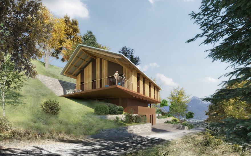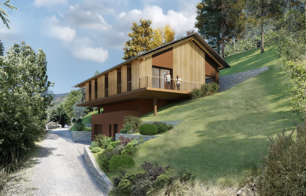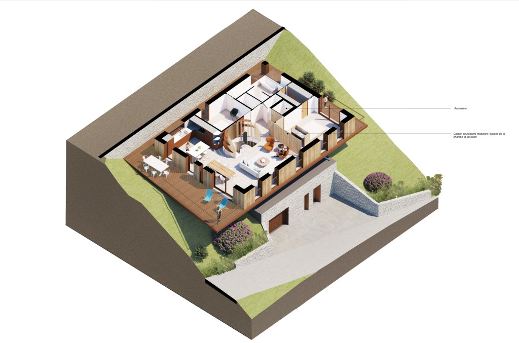 DESCRIPTION : Construction d’une villa sur un site arboré et penté dégageant des vues vers Briançon et les massifs montagneux alentours.