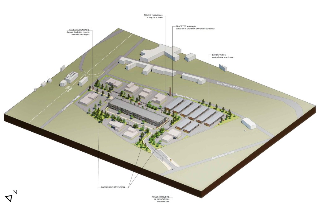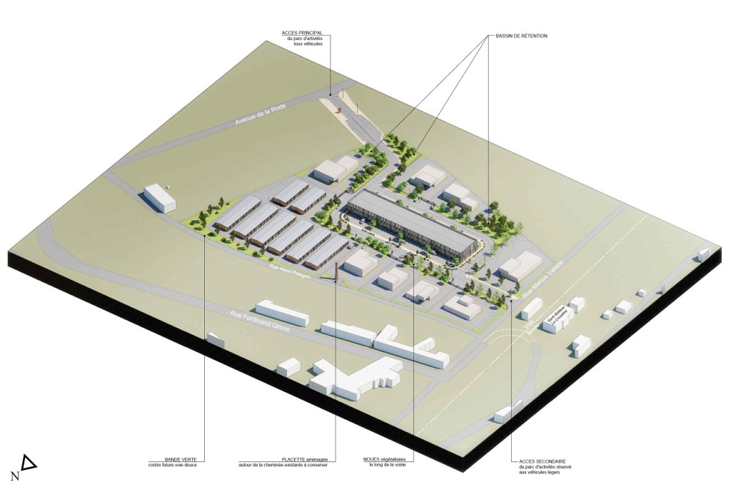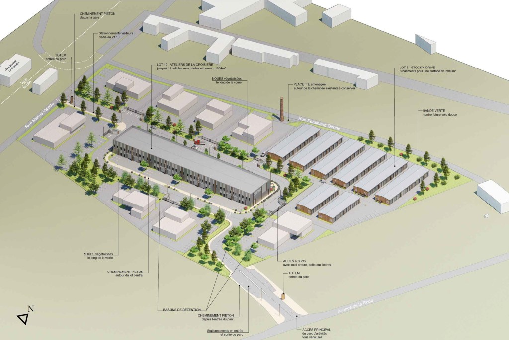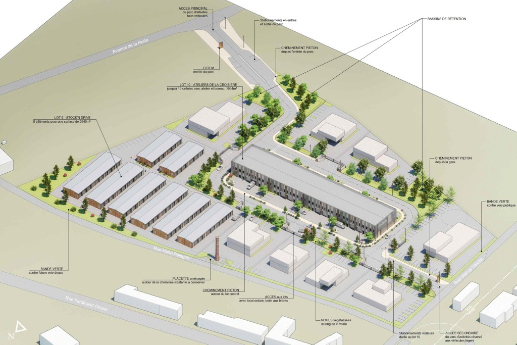 DESCRIPTION : Opération d’aménagement d’un parc d’activité comprenant 10 lots destinés à l’activité de bureaux des activités industrielles et artisanales. Construction d’un atelier de 2000 m² destiné à la location et 3000 m² de self stockage.